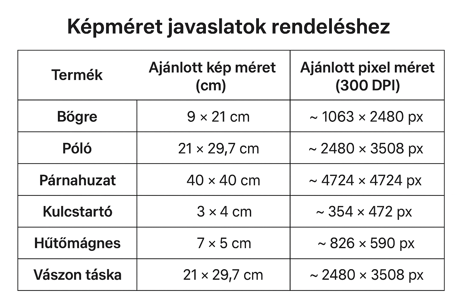 Javasolt kép méretek lentebb megtalálhatók egy táblázatban!