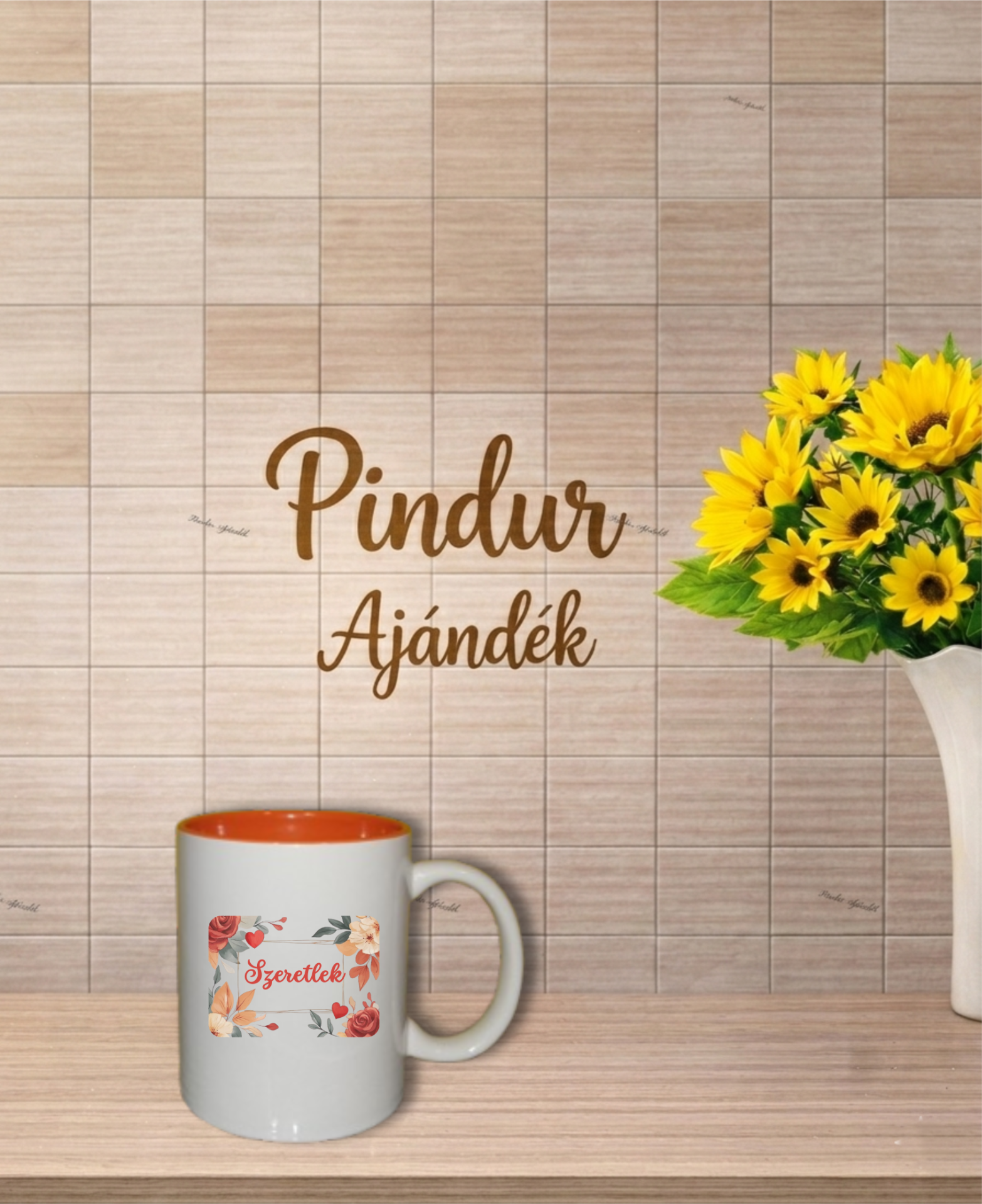 Bögre, narancssárga belsővel