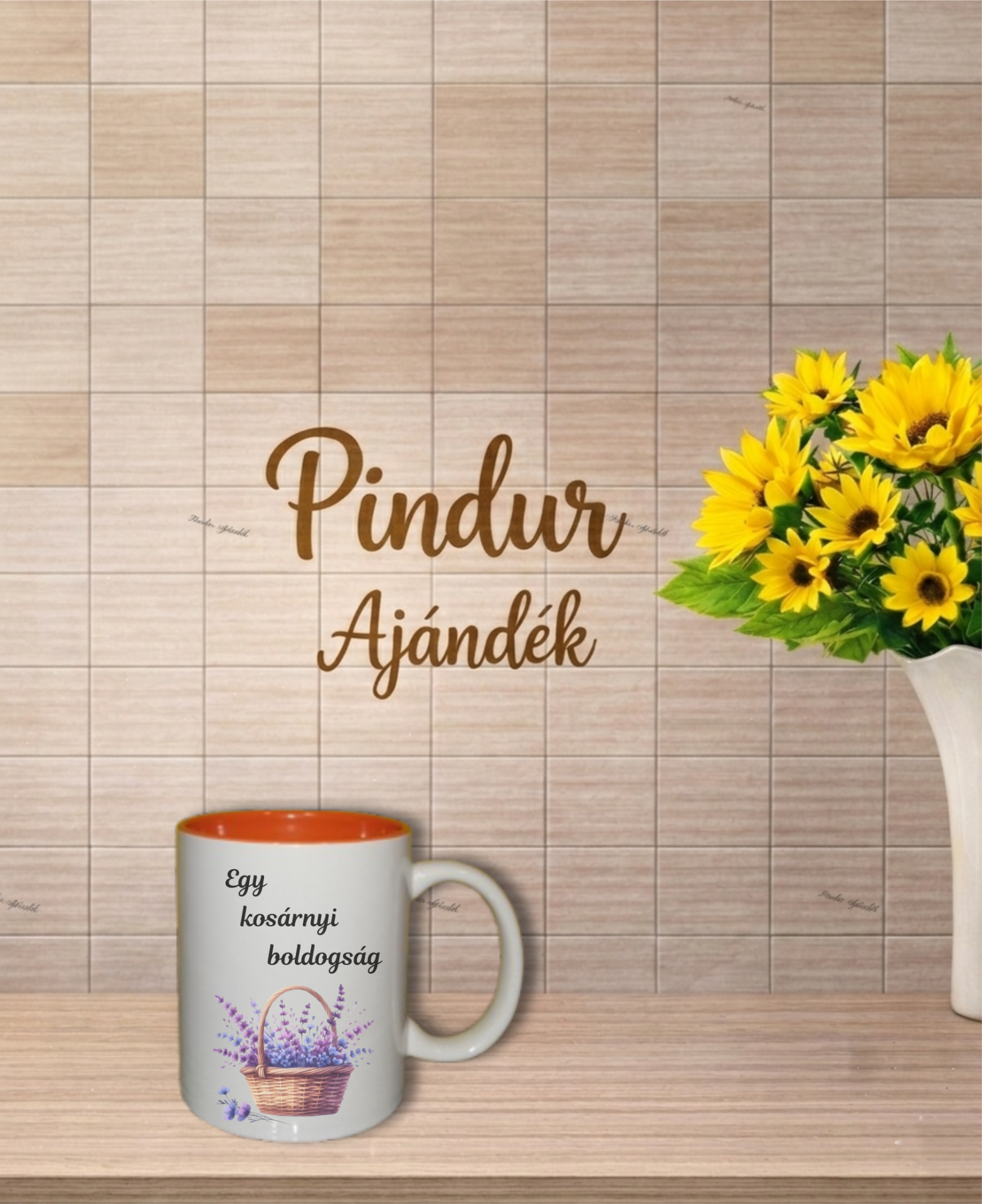 Kerámia bögre, narancs színű belsővel
