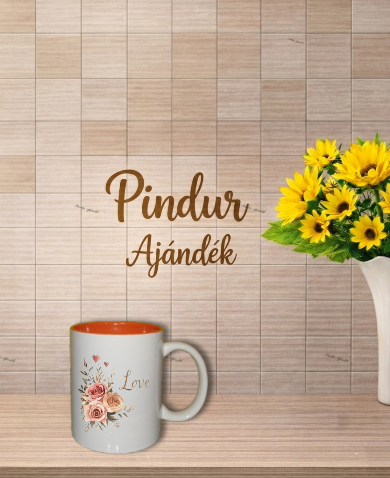 Bögre, narancssárga színű belsővel