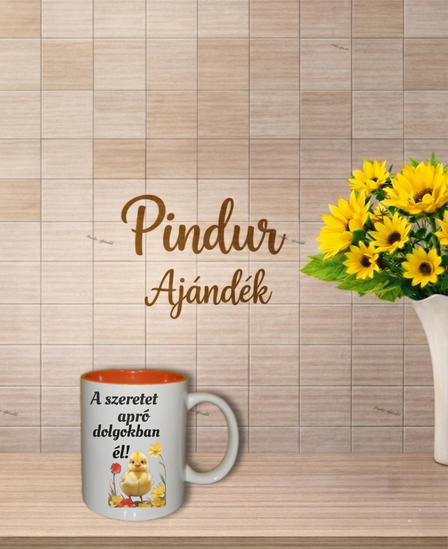 Bögre, narancssárga színű belsővel