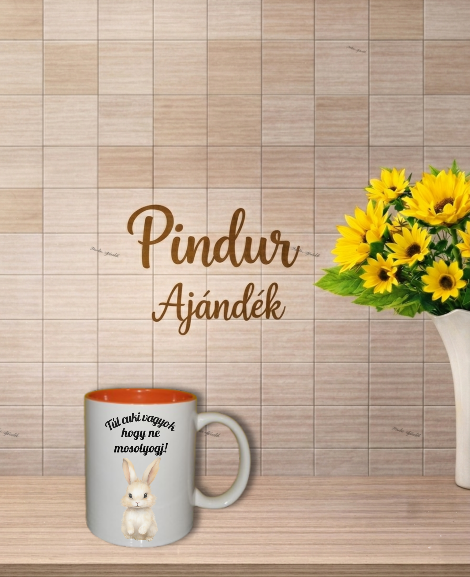 Kerámia bögre, narancs színű belsővel