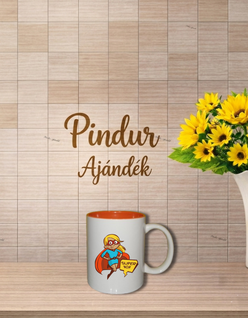 Kerámia bögre, narancs színű belsővel