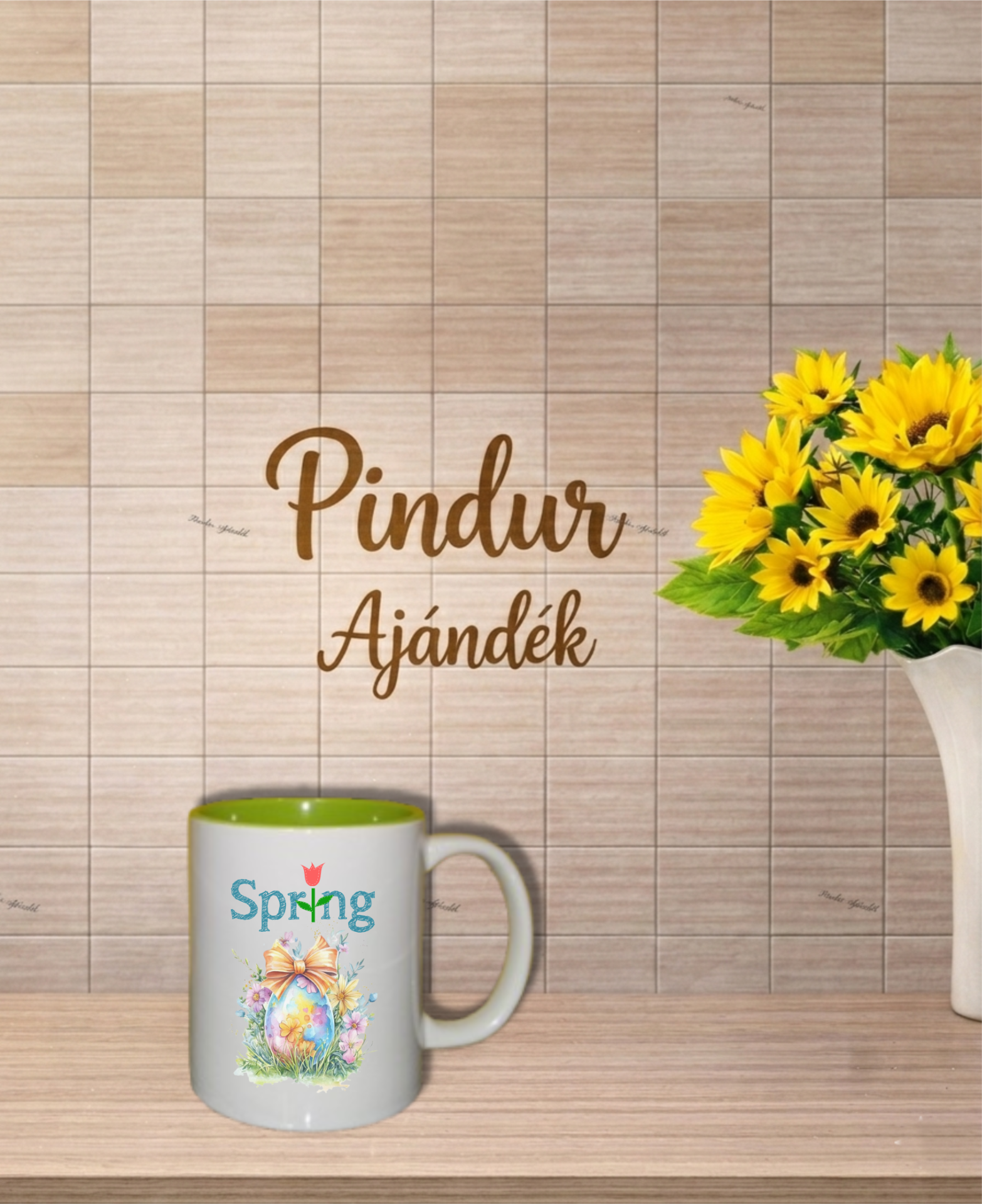 Fehér bögre, zöld belsővel