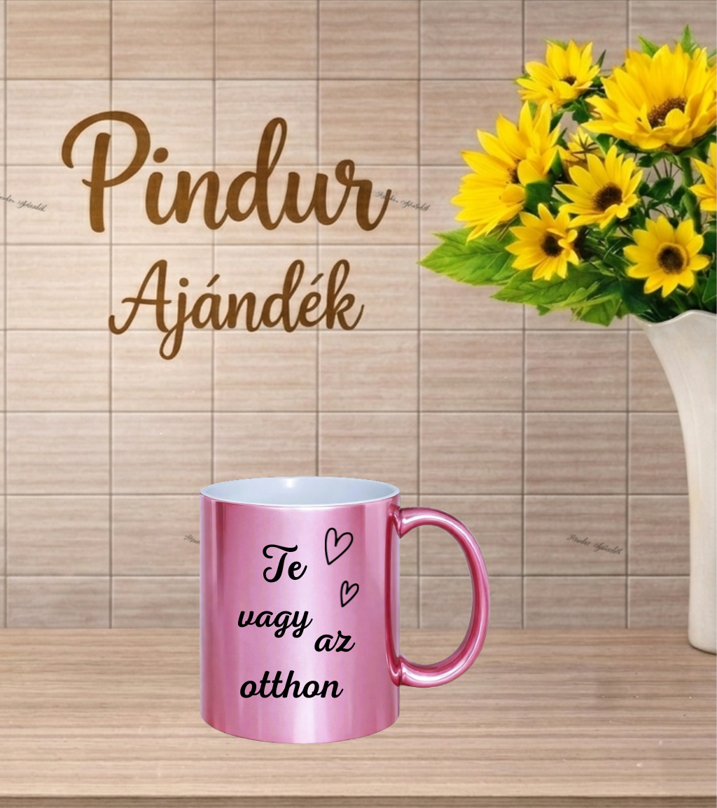 Metál fényű rózsaszín bögre